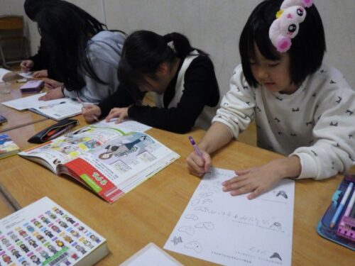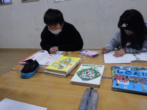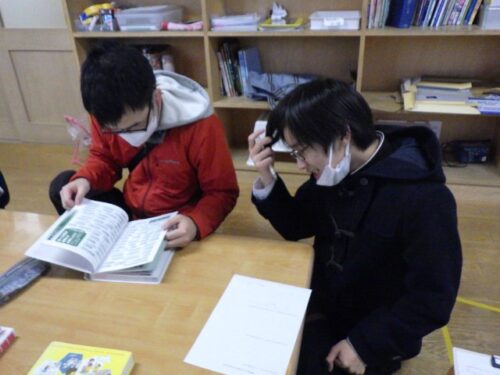 まずはじめは調べ学習です。絵がたくさん描いてあるもの、文章として細かく書いてあるものなど様々な本があるため、見比べながら取り組んでいきます。これまで自分の将来について考える機会が少なかった児童たち。本を読みつつどのような仕事があるかを探していましたね。