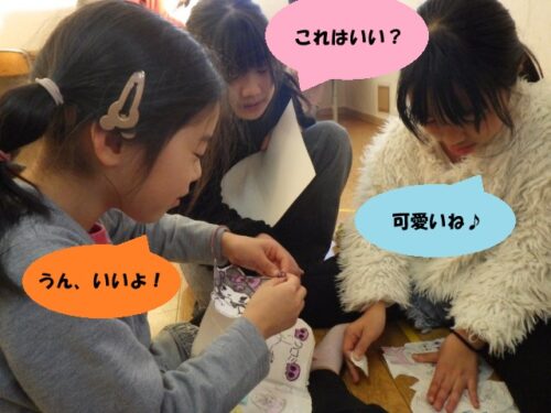 特にサンリオキャラクターのイラストが人気で「私は○○が好き!」「△△ちゃんは◇◇が好きだよね。」「先生は何が好きですか?」など好きな話題で盛り上がりながら手を動かす児童たちです。