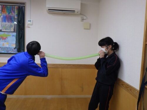 糸電話を使って普段はあまり話さない児童と話してみたり、たくさん質問をして相手を知るきっかけになったりと、楽しい実験となりました。活動後の自由遊びの時間も作った糸電話を使って話を続ける児童たちもいて、糸電話での実験、大成功でしたね。