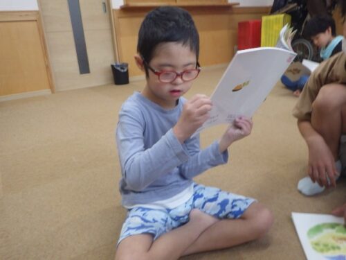 絵本を読む間はしっかりスタッフの方を向いて、立ち歩かず集中して読んでいましたね🌟読み聞かせが終了した後は、読んだ中のお気に入りの絵本をもう一度読み直していました📚
