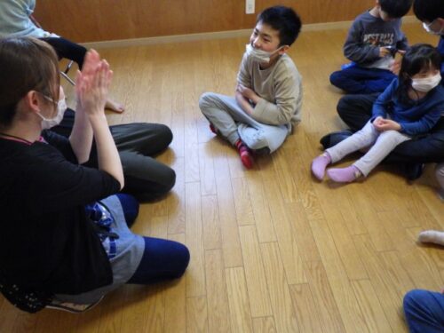 活動のお話が始まると「知ってるよ!」「やったことある!」とゲームが始まる前からワクワクな様子の児童たち。職員のお話し中に盛り上がりそうになってしまう場面もありましたが「まずはお話を聞いてね。」と職員が一度口にすると、スッ!と姿勢を正して、静かに耳を傾けています。