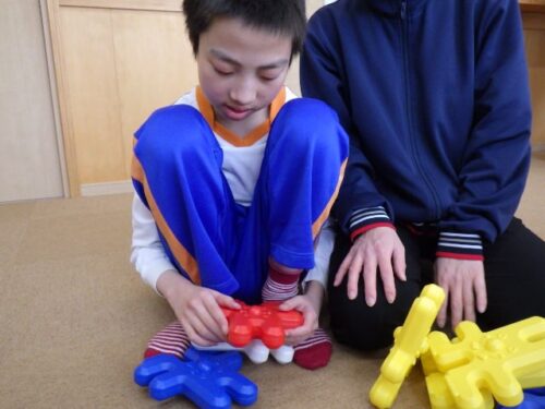 この活動は手指を使ってブロックを組み合わせていくことにより【集中力を養うこと】、形や大きさ、位置等をイメージすることにより【空間認知力を高めること】などを目的として行いました。