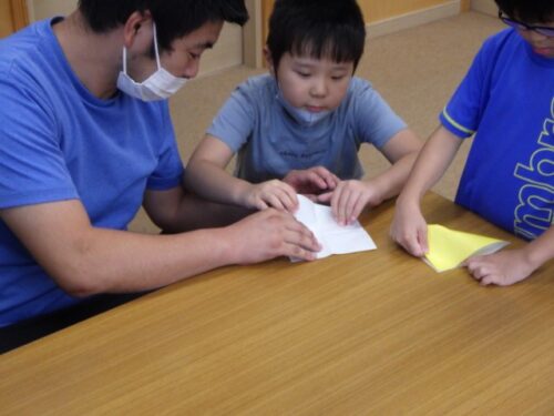 みんなで折り目を1つずつ確認して行い、全体への説明だけでは難しい児童には職員が手をとりながら一緒に作っていきましたよ(*^-^*)