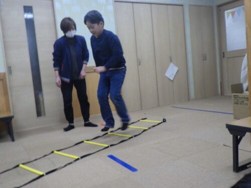 最後に2マス進んで1マスもどるジャンプにも挑戦!はじめは軽々とジャンプしていた児童たち。途中から疲れが見られることもありましたが、諦めずに最後まで取り組んでいましたね(^^♪