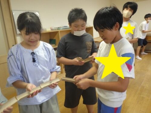 最後に全員でできるだけ長いコースを作ってピンポン玉を転がす事に挑戦しました。コース作りに関しては活動の前半で慣れていた児童達でしたが、出来るだけ長いコースを作る為に身長差や持ち方の違いなど意見を出しながら工夫してコースを作っていましたね。「ここ引っ掛かりそうじゃない?」「微妙に高さを調整してみよう」とお互いに声を掛け合いながら取り組んでいました。ゴールの箱に入れることを目的とした2回目はとてもスムーズに取り組めていましたね!