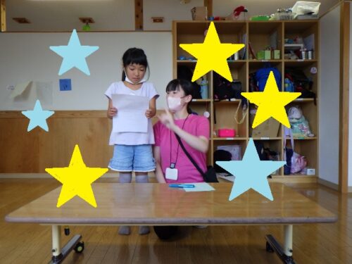 それぞれ自分の出番が回って来ると、少し緊張した表情を見せながらも誕生日会の進行表を見ながら会を進めていきます。大きな声で自分の台詞を言い終えると、ほっとした表情を見せつつも達成感を感じていた様子でしたよ(^^)