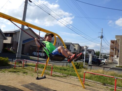 公園に着くと、まずは遊具で遊びます。高いところに登って、滑り台で降りて…といった遊びを何度も繰り返し行い、脚力や体力を沢山使いましたね!ブランコでは高くまで上がり、浮遊感を楽しんでいました。「押してください」と職員にお願いする姿や、「立っても出来るよ!」と少しだけ恐い気持ちを克服して頑張る姿が見られ、とても良かったです。